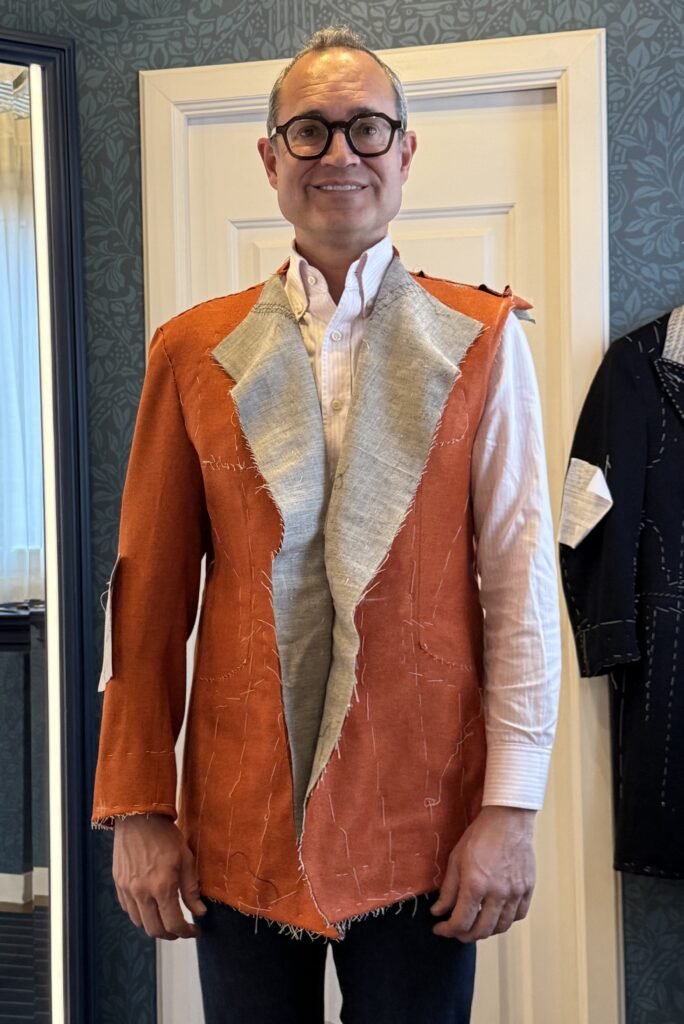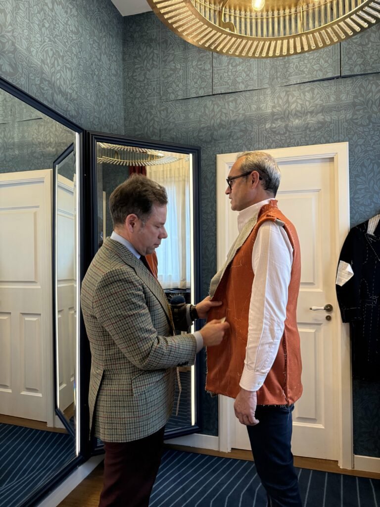 Joaquín Fernández Prats fue el sastre que se aventuró a coserme la chaqueta, no sin muchos meses entre la elección de la tela y la entrega. La carga de trabajo de las sastrerías españolas vuelve a estar en máximos y tener prisa no parece ser hoy lo mejor – me comentaba hace ya más de un mes un compañero de Joaquín que ya no cogían encargos de chaqués para este verano pues no hay mano de obra capaz de sacar adelante todos los pedidos. Esto ha hecho también que, como todo últimamente, los precios hayan experimentado un aumento considerable.