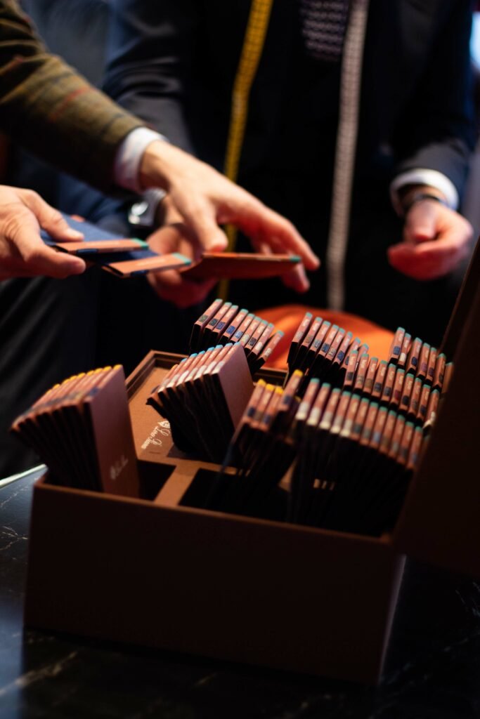 Además, la cachemira que utiliza Loro Piana se selecciona con criterios muy estrictos: solo se emplean fibras que cumplen con estándares de finura, longitud y resistencia excepcionales, lo que conlleva que las existencias sean naturalmente limitadas. La producción de tejidos exclusivos como el de esta chaqueta se realiza en cantidades reducidas, lo que subraya su rareza y el valor de cada metro de tejido.