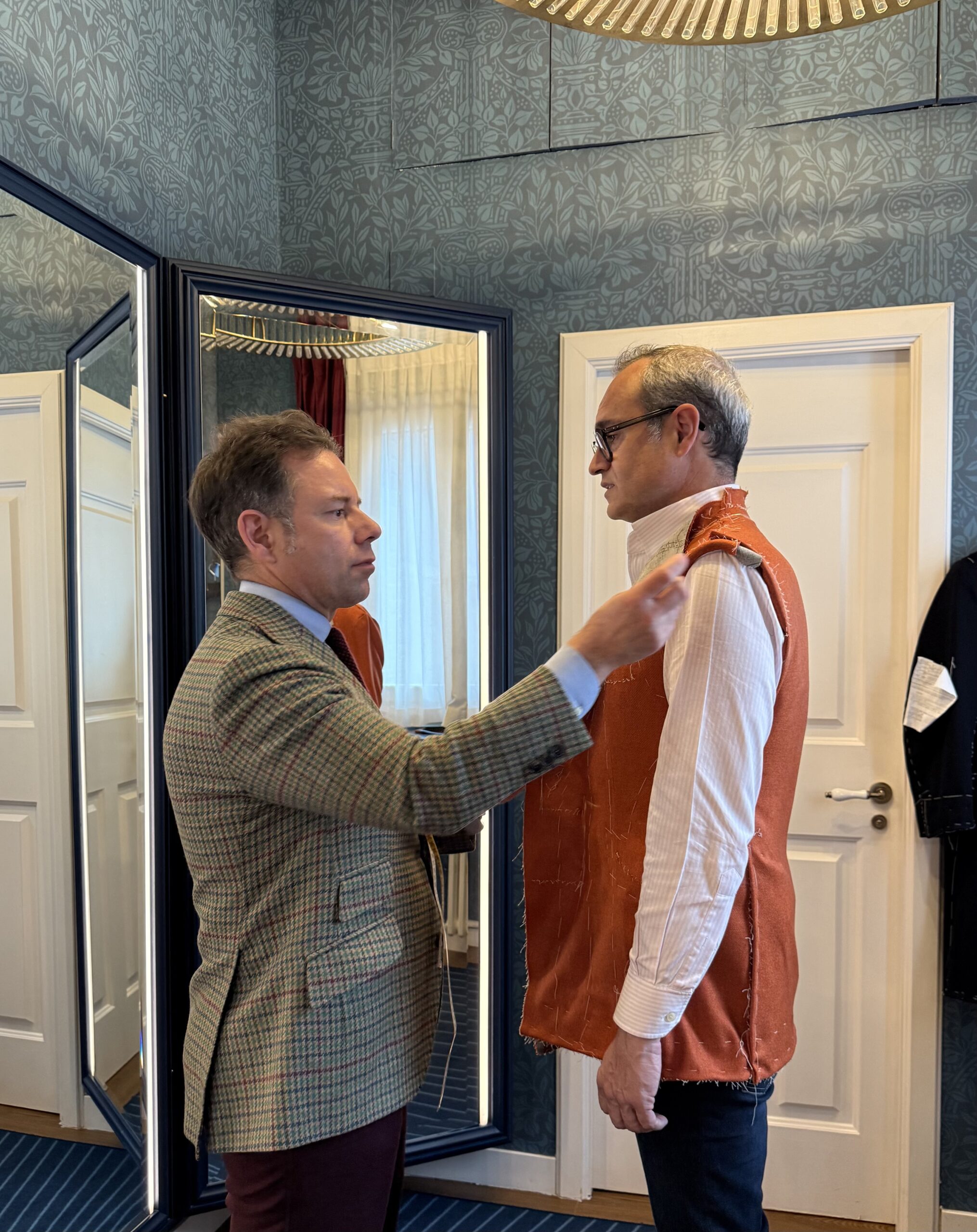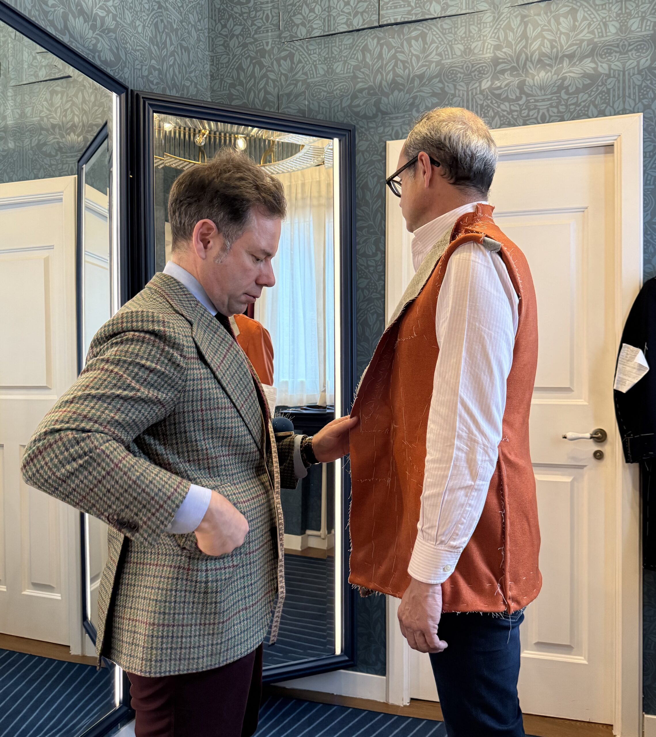 Joaquín Fernández Prats fue el sastre que se aventuró a coserme la chaqueta, no sin muchos meses entre la elección de la tela y la entrega. La carga de trabajo de las sastrerías españolas vuelve a estar en máximos y tener prisa no parece ser hoy lo mejor – me comentaba hace ya más de un mes un compañero de Joaquín que ya no cogían encargos de chaqués para este verano pues no hay mano de obra capaz de sacar adelante todos los pedidos. Esto ha hecho también que, como todo últimamente, los precios hayan experimentado un aumento considerable.