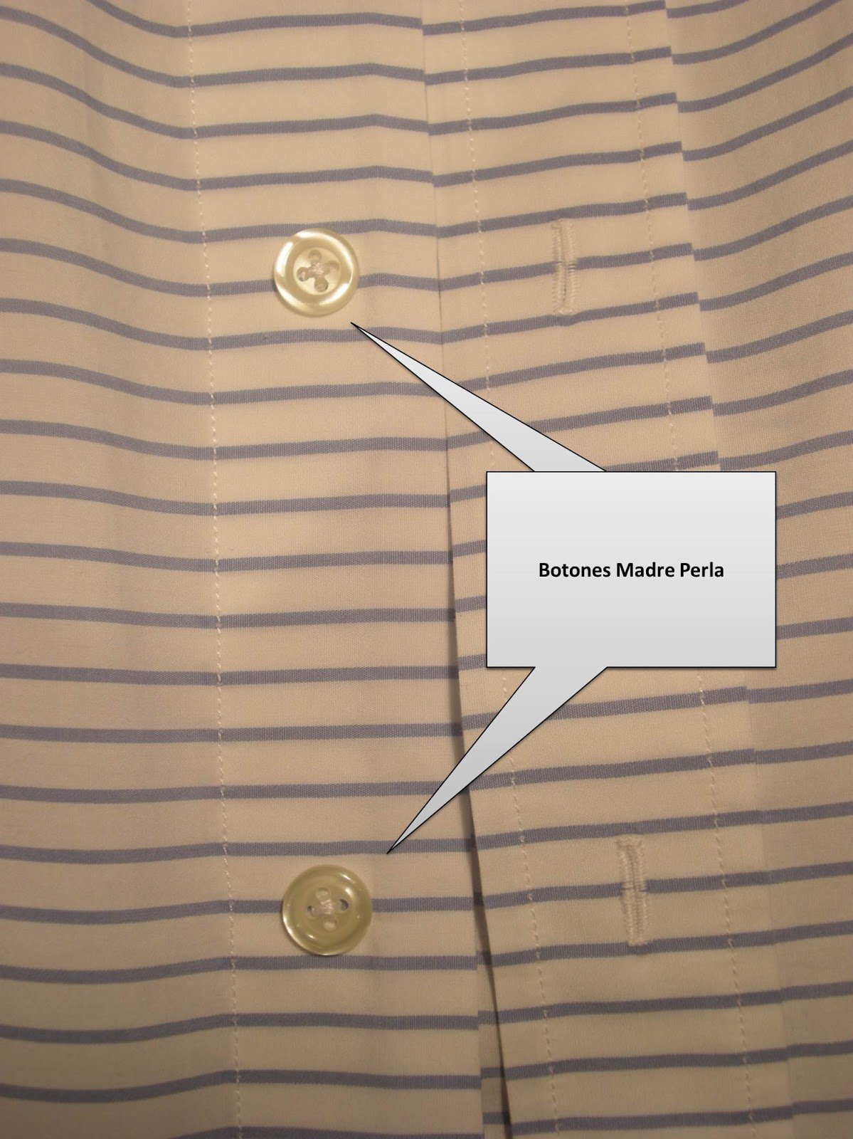 Respecto a esas cosas que más fácilmente nuestra vista puede detectar encontramos en primer lugar los botones. Cualquier camisa, incluso ya siendo de mediana calidad, debería contar con botones del material conocido como madre perla. Nuestra camisa debería sernos entregada con un juego de repuesto por si se perdiera el botón de los puños o del frontal.