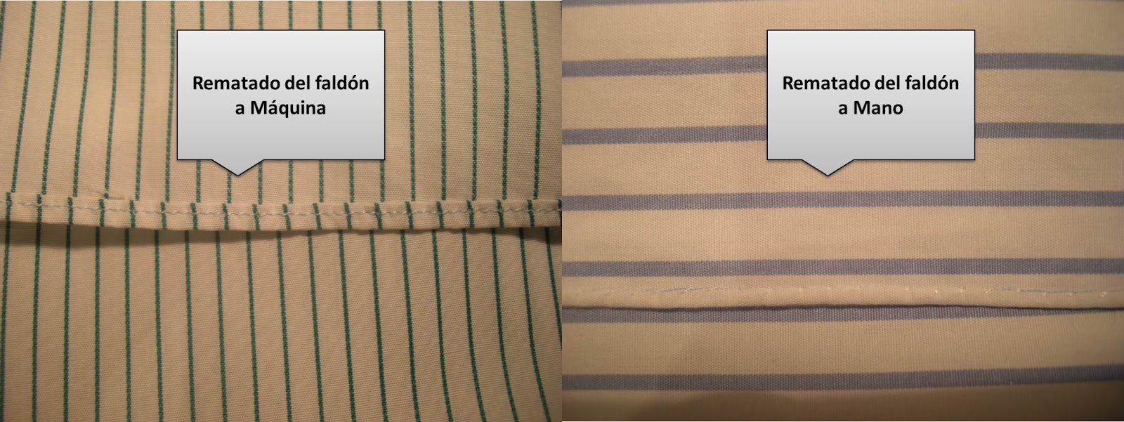 Otro detalle que habla de la calidad de una camisa es el rematado que a lo largo del faldón de la camisa se hace con un dobladillo cosido a mano.